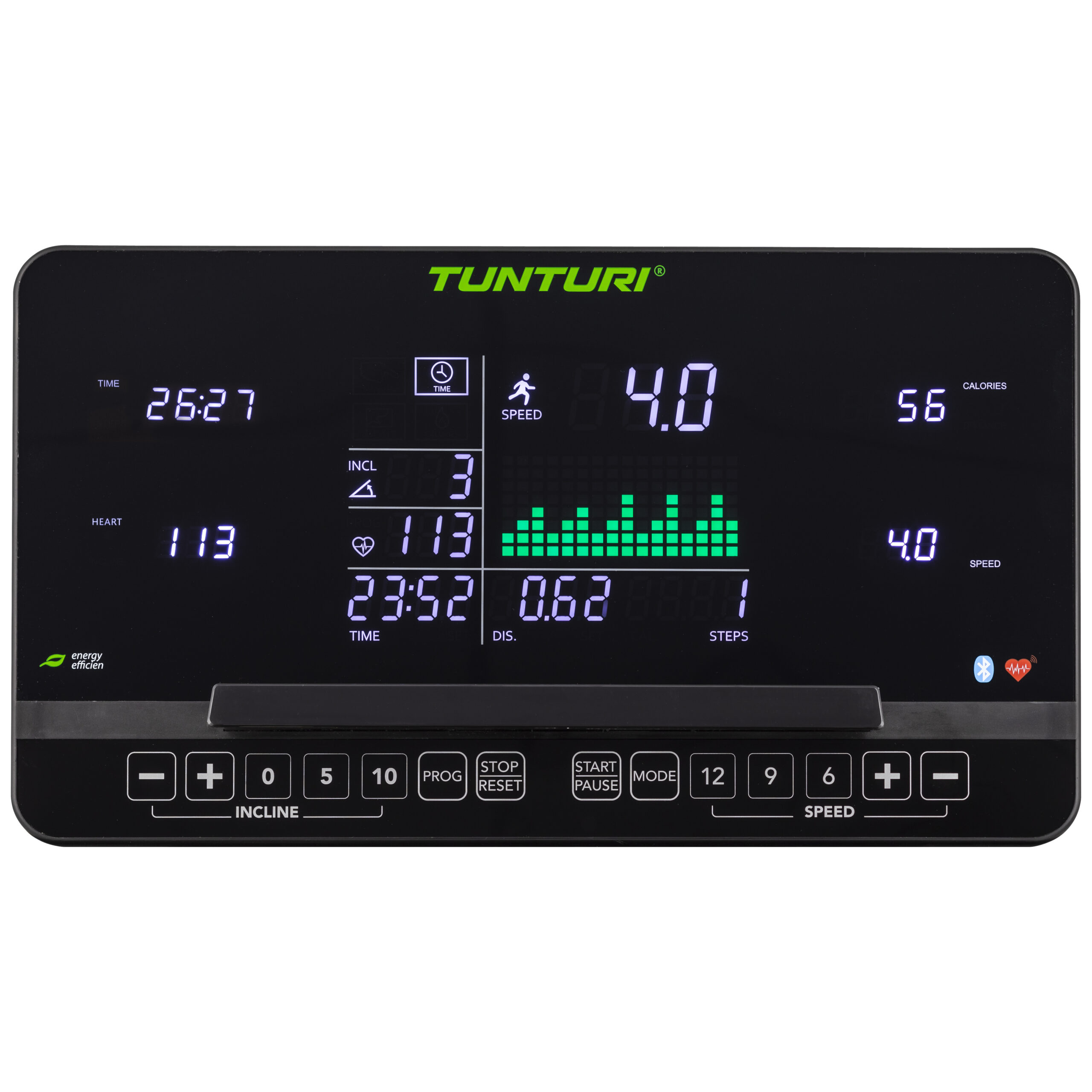 A Tunturi Competence T40 futópad a Tunturi új 2020-es fejlesztésű futópadjainak alap modellje. A 12%-ig elektromosan dönthető 45 x 125 cm-es ízületkímélő futófelülethez és 16 km/h-ás csúcssebességhez egy 3.5 LE állandó teljesítményű motor adja a megbízható erőt, így a futópad akár intenzív használat esetén és nagy felhasználói súly alatt is egyenletesen működik. A 44 programmmal 36 előre programozott, 3 felhasználói program, 1 gyors program, 1 zsírégető program, 1 távolság, kalória, idő visszaszámláló programmal rendelkező, tablet tartóval és USB töltővel is ellátott komputer már Bluetooth kapcsolattal is rendelkezik, így akár több különböző applikációval is összekapcsolható. Mindezen felül a felhasználónak lehetősége van saját programot is készíteni és elmenteni a Tunturi T40 futópad komputerébe, melyet bármikor módosíthat is az aktuális fittségi állapotától függően.